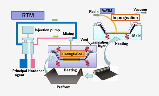 قالب گیری انتقال رزین (RTM) یک فرآیند تولید کامپوزیت در قالب بسته است که برای تولید قطعات با شکل پیچیده، کیفیت بالا و خواص مکانیکی تکرارپذیر استفاده می شود. این روش شامل تزریق رزین به یک تقویت کننده الیاف خشک از پیش ساخته شده در یک قالب بسته تحت فشار است که امکان اشباع موثر و کنترل دقیق نسبت رزین به الیاف را فراهم می¬کند. RTM به طور گسترده در صنایعی مانند هوافضا، خودروسازی، دریایی و انرژی باد برای تولید قطعات کامپوزیتی سبک وزن و بادوام استفاده می شود.